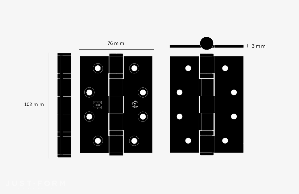 Дверные петли Door Hinge / Set of 2 / 102 x 76 x 3 mm от британской фабрики Buster + Punch. Эти петли выполнены из цельной нержавеющей стали и отличаются лаконичным дизайном и прочной конструкцией. Каждая петля имеет специальные отверстия под винты с потайной головкой и украшена выгравированным логотипом B+P. Петли продаются парами и идеально подходят для создания единого, стилистически согласованного образа с любой дверной фурнитурой Buster + Punch (ручками, накладками, дверными стопперами). Доступны версии из не окрашенной нержавеющей стали, с PVD покрытием под латунь и катафорезным черным матовым покрытием. Образцы изделий, материалов и отделок Buster + Punch представлены в нашем шоуруме.