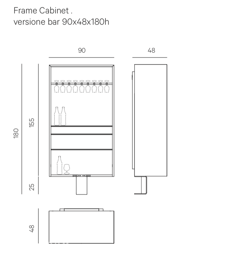 Буфет Frame Cabinet от итальянской фабрики Henge выпускается в двух версиях - бар и буфет. Корпус и дверцы изготавливаются из массива древесины толщиной 2 см. Ручки дверей также выполнены из массива. Буфет установлен на миниатюрное основание из брашированной латуни, визуально облегчающей массивную конструкцию. Обязательно крепление корпуса к стене входящими в комплект кронштейнами. Внутренние полки изготовлены из закаленного стекла с бронзовым оттенком толщиной 1 см.Варианты отделки: Oak Thermowood, Eucalyptus Thermowood, Black Eucalyptus Thermowood, Acacia Thermowood, Swamp Oak, Swamp Elm, Drama Brass.Опции:- лотки из массива древесины толщиной 1,2 см- лотки из латуни, обработанной вручную- внутренняя светодиодная подсветка и задняя стенка, отделанная двойным стеклом толщиной 0,3 + 0,3 мм с прокладкой из льняной ткани в качестве рассеивателя- внешняя тыловая светодиодная подсветка- дополнительные держатели для бокалов