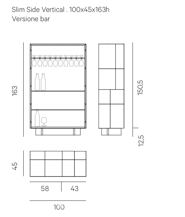 Буфет Slim Side Vertical от итальянской фабрики Henge выпускается в двух версиях - бар и стандартная. Корпус изготавливается из массива древесины толщиной 2 см и отделывается металлическими пластинами. Внутренние поверхности и основание имеют отделку Black Eucalyptus, на внутренней стороне задней стенки крепится зеркало с бронзовым оттенком. Варианты отделки металла: Burnished Brass, Scratched Brass, Black Burnished Brass, H-Silver® , H-Silver® Scratched, Burnished Platino, Burnished Titanio. H-Silver - это уникальная отделка, запатентованная компанией Henge. 99,9% серебро вручную наносится на латунный лист и образует неповторимый неравномерный рисунок.Опции:- лотки из термообработанного дуба- лотки из брашированной латуни- дополнительные держатели для бокалов- дополнительные полки из закаленного стекла с бронзовым оттенком толщиной 1 см- внутренняя светодиодная подсветка.
