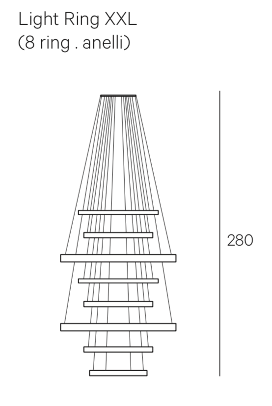 Диммируемый светодиодный светильник Light Ring XXL составлен из латунных колец. Варианты отделки: полированная латунь, черненая сталь или запатентованное фабрикой Henge покрытие H-Silver: чистое серебро 99,9% на латуни. Ручная полировка. Люстра составляется из колец разного размера и разного светового потока. Минимальная высота композиции 280 см. Трансформатор питания встроен в потолочную розетку. Бестселлер компании Henge. Дизайн Massimo Castagna.Dimmer Kit (DALI или DMX) - опция.Композиция из 8 колец:1 X Ø 70 см; 30 Вт – 2268 лм – 3000K2 X Ø 60 см; 23 Вт – 1728 лм – 3000K3 X Ø 100 см; 40 Вт – 3024 лм – 3000K4 X Ø 70 см; 30 Вт – 2268 лм – 3000K5 X Ø 60 см; 23 Вт – 1728 лм – 3000K6 X Ø 100 см; 40 Вт – 3024 лм – 3000K7 X Ø 60 см; 23 Вт – 1728 лм – 3000K8 X Ø 50 см; 20 Вт – 1512 лм – 3000K